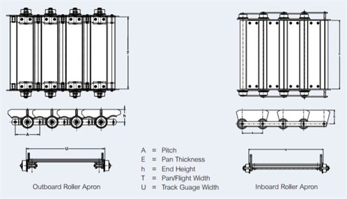 Renold Jeffrey Apron/Pan conveyor chain is ideal for moving product horizontally and up inclines. It is extensively used to handle bulk materials such as cement/clinker, ore, sand, gravel, stone, coal, foundry/castings, industrial refuse and a variety of similar materials for light, medium and heavy-duty applications.